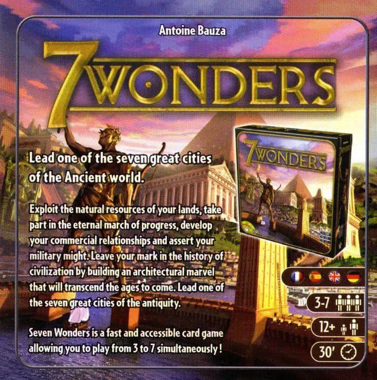 7 Wonders is a card game inspired by the seven wonders of the ancient world, each with its own set of strengths. Hardcore or new mechanics that modify your gameplay are examples of these strengths. One can give you the extra combat power, while the other might allow you to take cards from a discarded pile. Beginning with initial woodworking and trading, the game progresses through three thematic eras, from the development of sawmills and markets to the formation of labor organizations and trade unions.